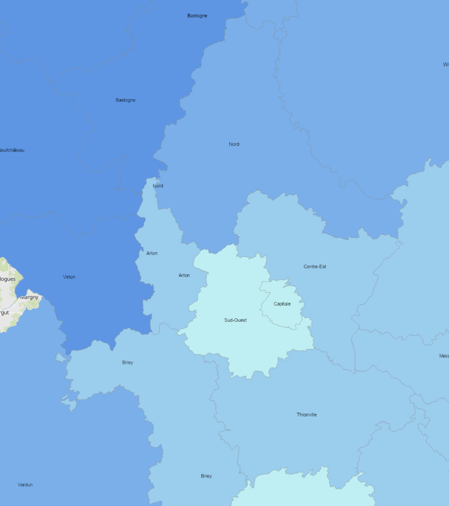 Number of road traffic deaths per 1.000.000 inhabitants (2020-2024) - Source: Sub-Working Group on Road Safety of the Summit of the Greater Region 2025 - Base map: © ACT Luxembourg, IGN France, GeoBasis-DE / BKG, NGI-Belgium